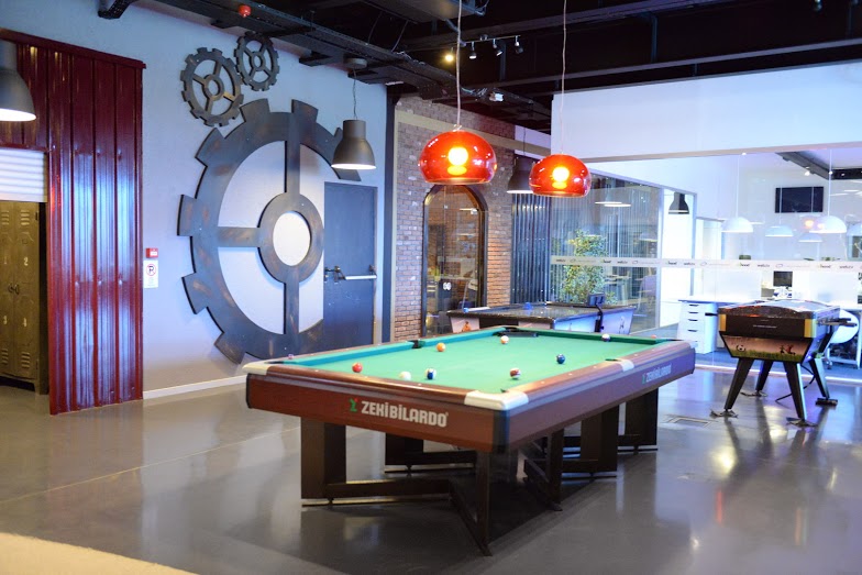 Turkticaret.net’in 2 katlı binası, ilk girdiğiniz anda, kapıda turnikeleri olan sıradan bir Teknokent firmasına benzese de, sosyal alana geçtiğiniz anda, bir tarafta bateri ve piyano, bir tarafta bilardo masası ve bar, diğer taraflarda tekne, ipek kozası, teleferik gibi değişik konseptlerdeki ofislerin tam ortasında yer alan renkli ve rahat koltuklara kendinizi attığınız anda fark ediyorsunuz ki, hayır burası sıradan bir ofis değil.