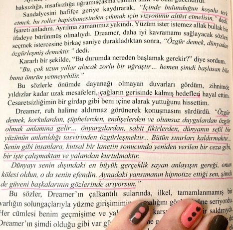 Bu kitabı okuduktan sonra, hani klişe ilişki bitirme cümlesi “sorun sende değil bende” vardır ya, işte o cümleyi alıp hayatımızın geneline yayıyor ve bir bahane olarak değil bir kişisel iyileşme yöntemi olarak kullanıyoruz. “Kişisel gelişim yöntemi” de diyebilirdim ama o zaman “iyi insan olma” tarafını vurgulayamazdım. Bence en önemlisi iyi insan olmak çünkü. Tam olarak iyi olmak, hem kendine hem herkese iyi davranmak, iyilik yapabilmek, ilişkileri kırmadan dökmeden hep büyüterek hep bağları güçlendirerek sürdürmek… ((Umarım bir gün hayalimdeki kadar İYİ olabilirim)) Kendimizden başka hiçbir şeyi değiştiremeyeceğimiz bu dünya düzeninde günümüzün yaklaşık 3/4’lük kısmını başkalarını değiştirmeye çalışarak geçiriyoruz.