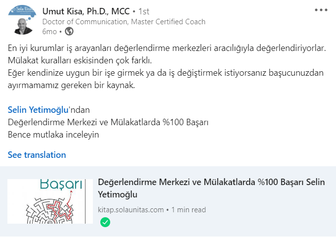 Umarım gireceğiniz değerlendirme merkezi uygulamaları ve iş mülakatları öncesinde okuma fırsatınız olur. Faydalı olması ve uğur getirmesi dileğiyle.